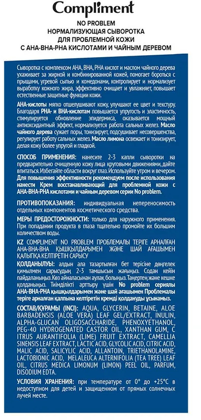 Compliment Сыворотка для проблемной кожи нормализующая с АНА-ВНА-РНА кислотами и чайным деревом