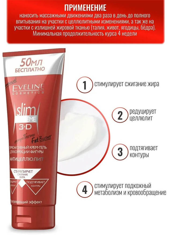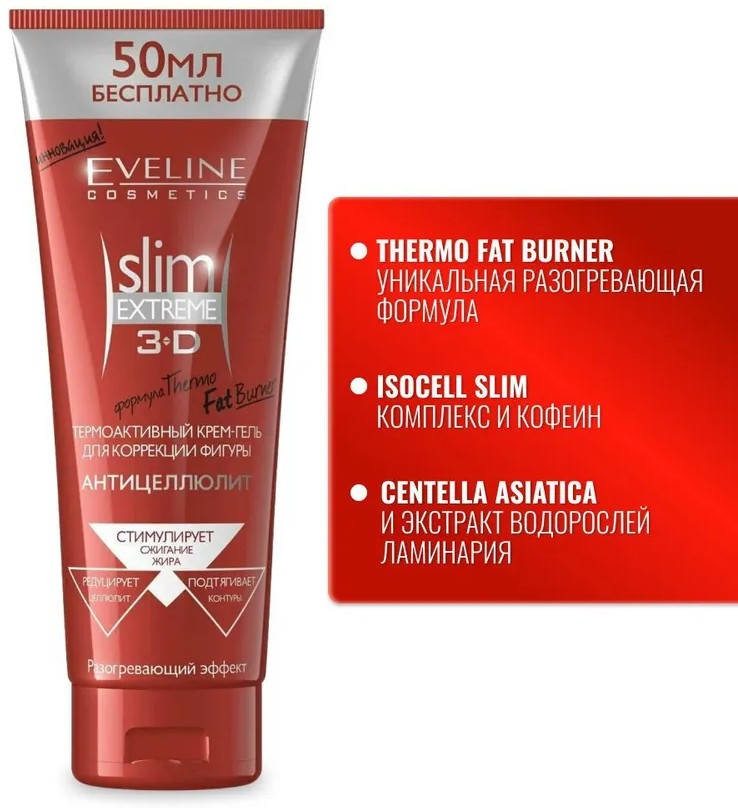 Eveline Cosmetics Крем-гель для коррекции фигуры термоактивный антицеллюлитный «Slim Extreme 3D»