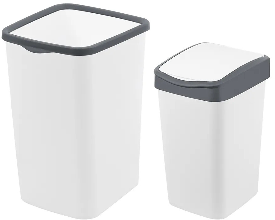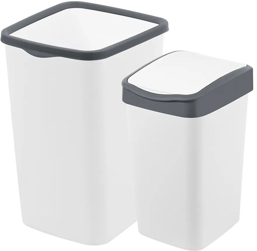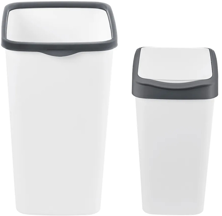 Набор 2 вёдер для мусора от бренда El Casa поможет поддерживать чистоту в вашем доме, офисе или на улице. Каждое мусорное ведро прямоугольной формы выполнено из полипропилена. Этот вид пластика считается наиболее безопасным, так как не содержит бисфенол А и не выделяет вредных веществ. Дизайн представляет собой стильное сочетание белого и серого цветов.