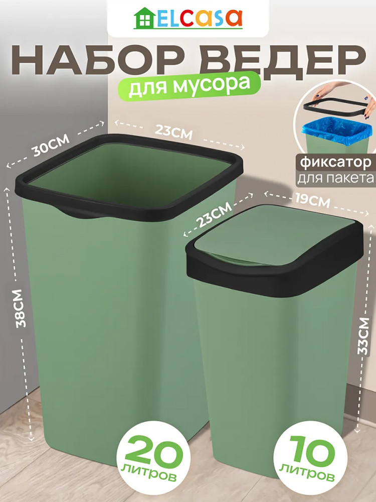Набор 2 вёдер для мусора от бренда El Casa поможет поддерживать чистоту в вашем доме, офисе или на улице. Каждое мусорное ведро прямоугольной формы выполнено из полипропилена. Этот вид пластика считается наиболее безопасным, так как не содержит бисфенол А и не выделяет вредных веществ. Дизайн представляет собой стильное сочетание белого и серого цветов.