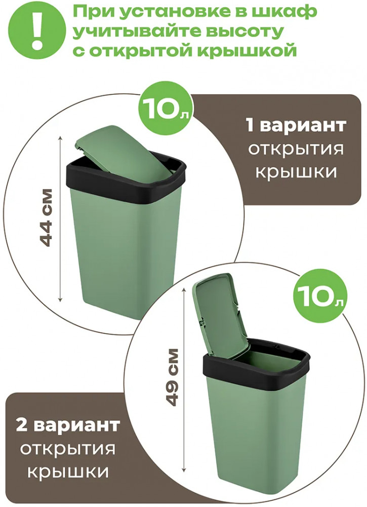 • ведро с подвижной крышкой 19×23×33 см на 10 литров (размер дна 18,6×15 см) — 1 шт.;