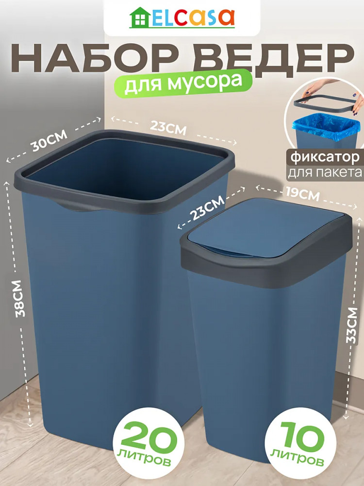 Набор 2 вёдер для мусора от бренда El Casa поможет поддерживать чистоту в вашем доме, офисе или на улице. Каждое мусорное ведро прямоугольной формы выполнено из полипропилена. Этот вид пластика считается наиболее безопасным, так как не содержит бисфенол А и не выделяет вредных веществ. Дизайн представляет собой стильное сочетание белого и серого цветов.