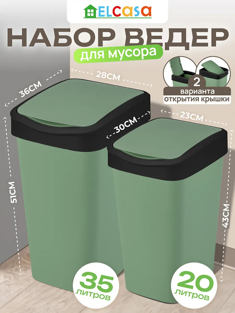 Набор 2 вёдер для мусора от бренда El Casa с подвижными крышками поможет поддерживать чистоту в вашем доме, офисе или на улице. Каждое мусорное ведро прямоугольной формы выполнено из полипропилена. Этот вид пластика считается наиболее безопасным, так как не содержит бисфенол А и не выделяет вредных веществ. Дизайн представляет собой стильное сочетание белого и серого цветов.