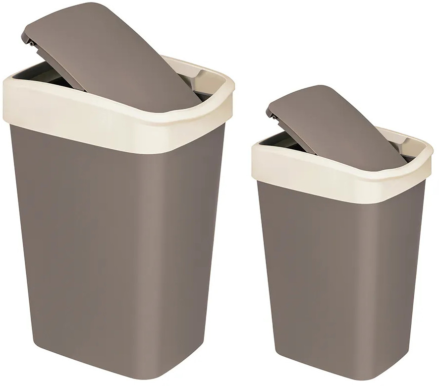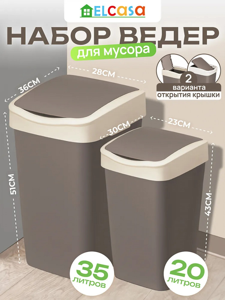 Набор 2 вёдер для мусора от бренда El Casa с подвижными крышками поможет поддерживать чистоту в вашем доме, офисе или на улице. Каждое мусорное ведро прямоугольной формы выполнено из полипропилена. Этот вид пластика считается наиболее безопасным, так как не содержит бисфенол А и не выделяет вредных веществ. Дизайн представляет собой стильное сочетание белого и серого цветов.