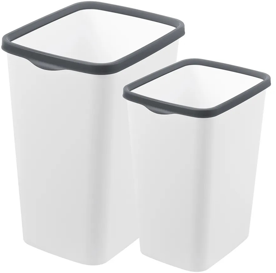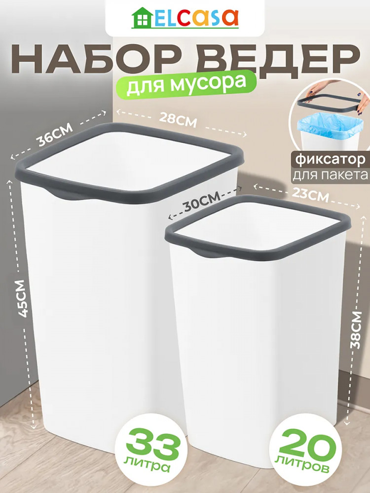 Набор 2 вёдер для мусора от бренда El Casa поможет поддерживать чистоту в вашем доме, офисе или на улице. Каждое мусорное ведро прямоугольной формы выполнено из полипропилена. Этот вид пластика считается наиболее безопасным, так как не содержит бисфенол А и не выделяет вредных веществ. Дизайн представляет собой стильное сочетание белого и серого цветов.