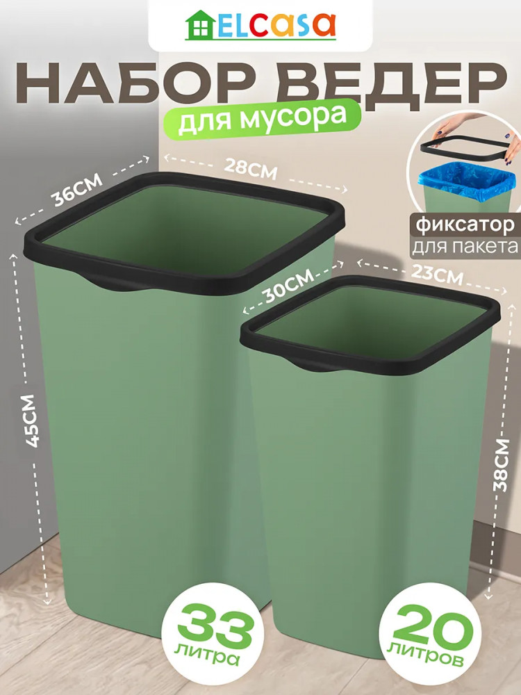 • ведро без крышки с фиксатором для мусорных пакетов 36×28×45 см на 33 литра (размер дна 28×21,5 см) — 1 шт.;