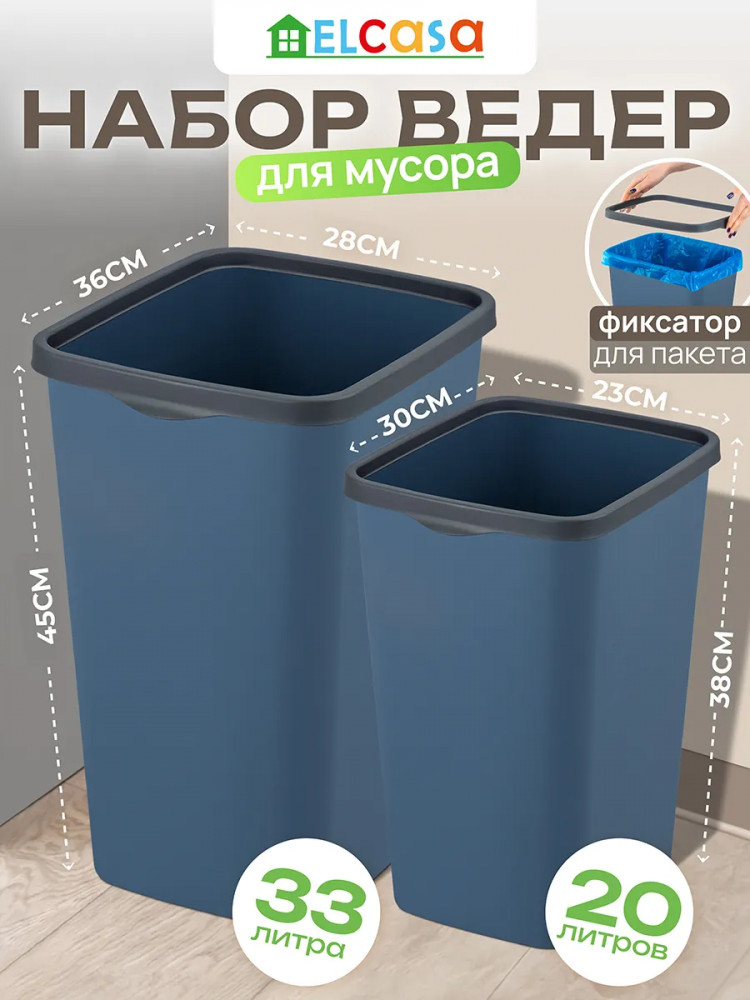 Набор 2 вёдер для мусора от бренда El Casa поможет поддерживать чистоту в вашем доме, офисе или на улице. Каждое мусорное ведро прямоугольной формы выполнено из полипропилена. Этот вид пластика считается наиболее безопасным, так как не содержит бисфенол А и не выделяет вредных веществ. Дизайн представляет собой стильное сочетание белого и серого цветов.