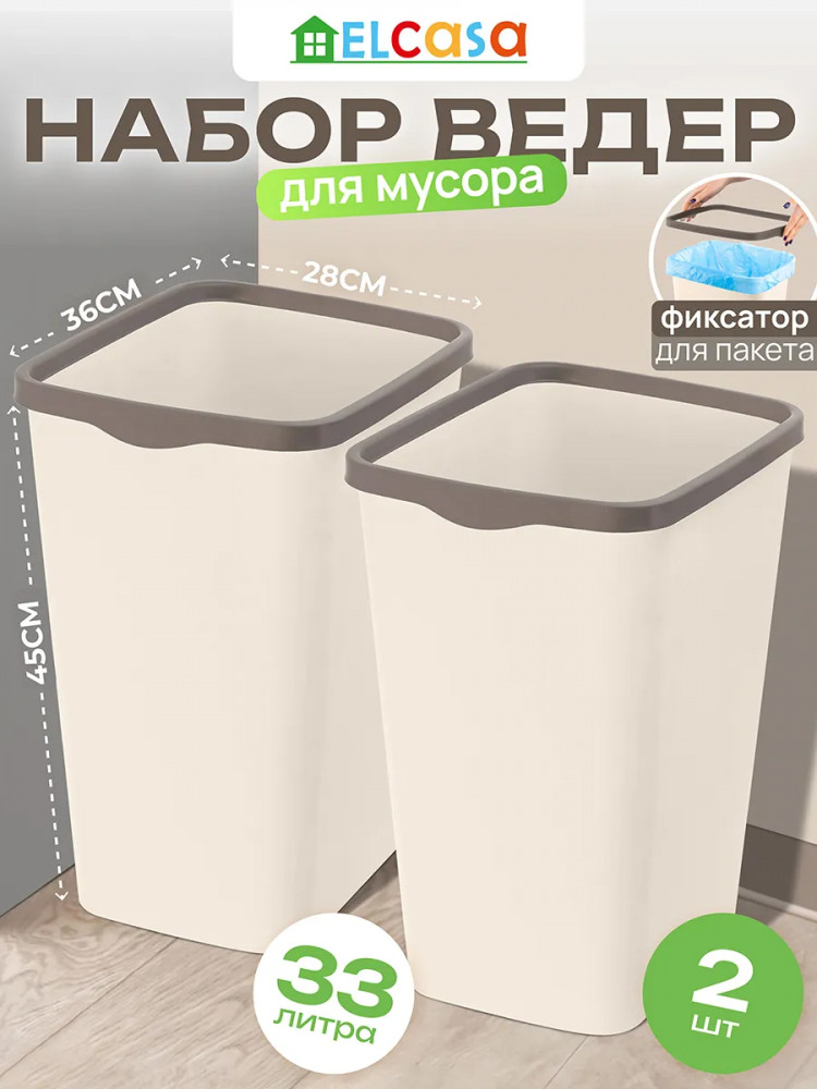 Набор 2 белых вёдер для мусора с серыми фиксаторами от бренда El Casa поможет поддерживать чистоту в вашем доме, офисе или на улице. Каждый мусорный контейнер выполнен из полипропилена. Этот вид пластика считается наиболее безопасным, так как не содержит бисфенол А и не выделяет вредных веществ.