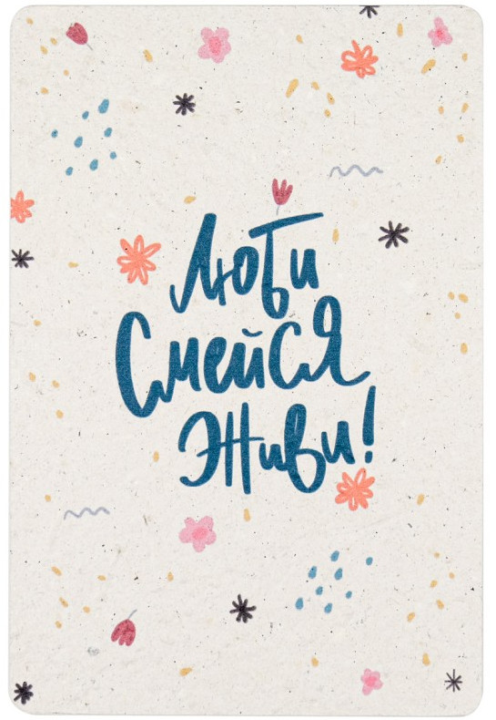 Toki Открытка растущая «Люби, смейся, живи»В данный момент этот товар отсутствует в продаже. Возможно, у нас найдется аналогичный или похожий товар здесь. Растущая открытка «Magicme» — сделана из «живой бумаги» ручного отлива, в составе которой, находятся семена растений. Если ее посадить в землю из нее вырастут цветы (гвоздика, колокольчик, ромашка). Размер: 10×15 см. |