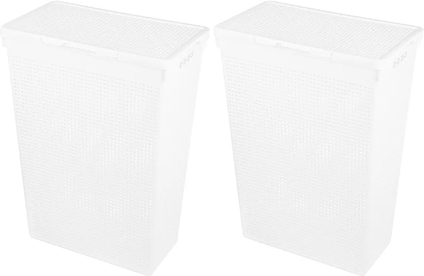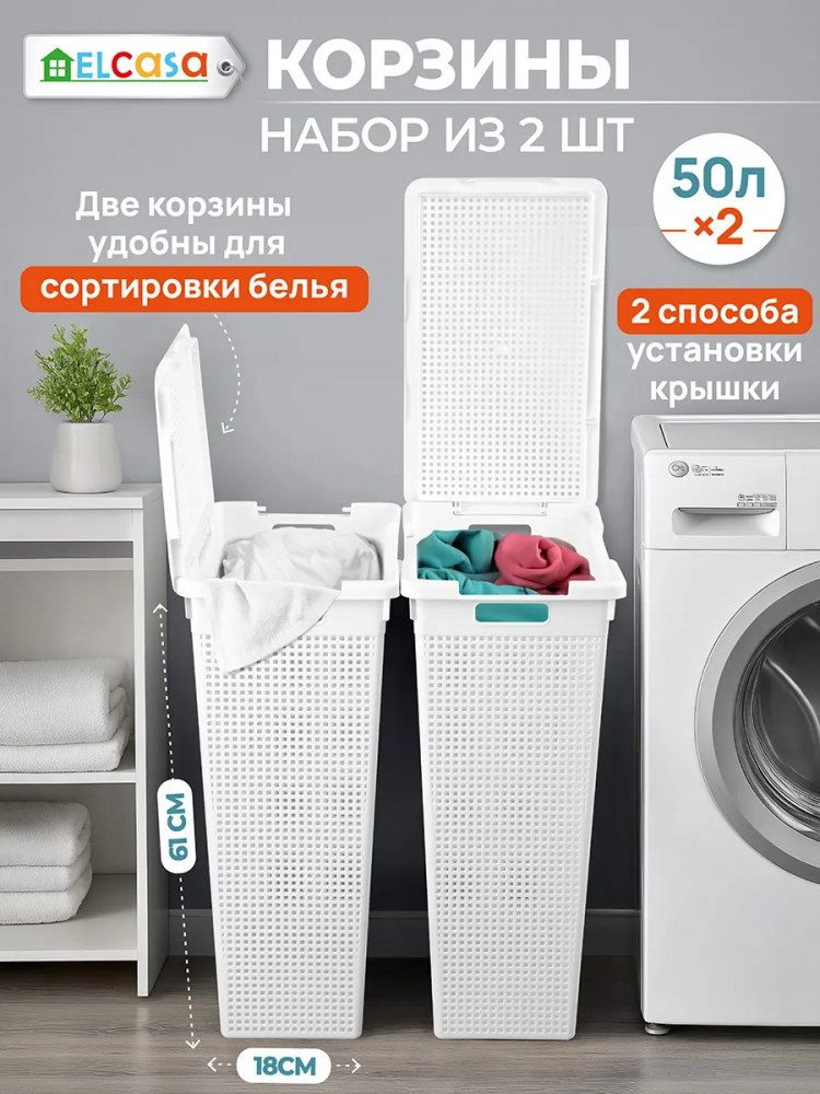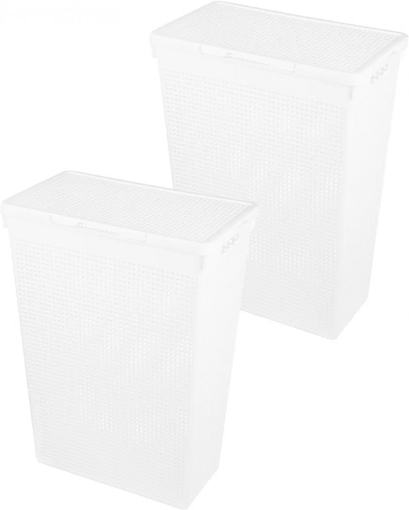 Набор 2 бельевых корзин с крышкой от El Casa предназначен для организации хранения в вашем доме. Размер каждого изделия — 45×26×61,5 см, объём — 50 литров. Размер дна — 37×18 см. Выполнены из полипропилена — прочного пластика, который не содержит бисфенол А и другие вредные вещества.