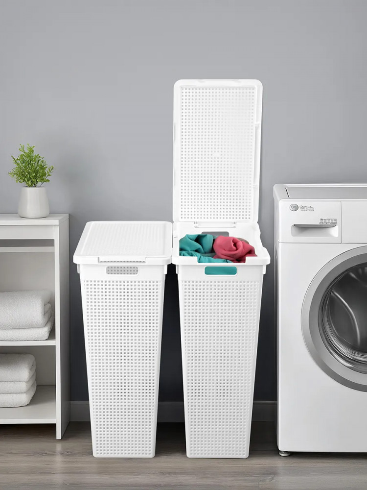 Благодаря своему лаконичному, но изысканному внешнему виду изделия впишутся в любой интерьер и найдут место в любой части вашего дома. Оснащены удобными крышками, надёжно закрывающими содержимое. Имеют два вида установки: на узкой или на широкой стороне корзины. Контейнеры идеально подходят для хранения вещей перед стиркой. Они помогут заранее сортировать одежду, полотенца, наволочки, постельное бельё и другие текстильные изделия. С ними вы легко организуете практичную систему хранения вещей. Разместите их рядом со стиральной машинкой, под раковиной в ванной комнате, а также в шкафу. Вместительные корзинки также послужат в роли универсальных органайзеров для хозяйственных принадлежностей, детских игрушек и предметов для рукоделия. Малый вес корзин и удобные ручки позволят перемещать их по всему дому. Не рекомендуется применять абразивные моющие средства.