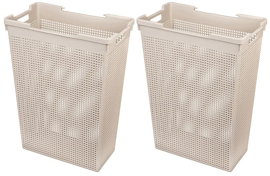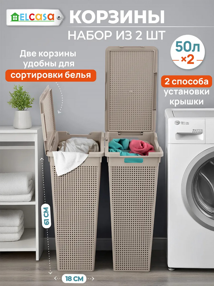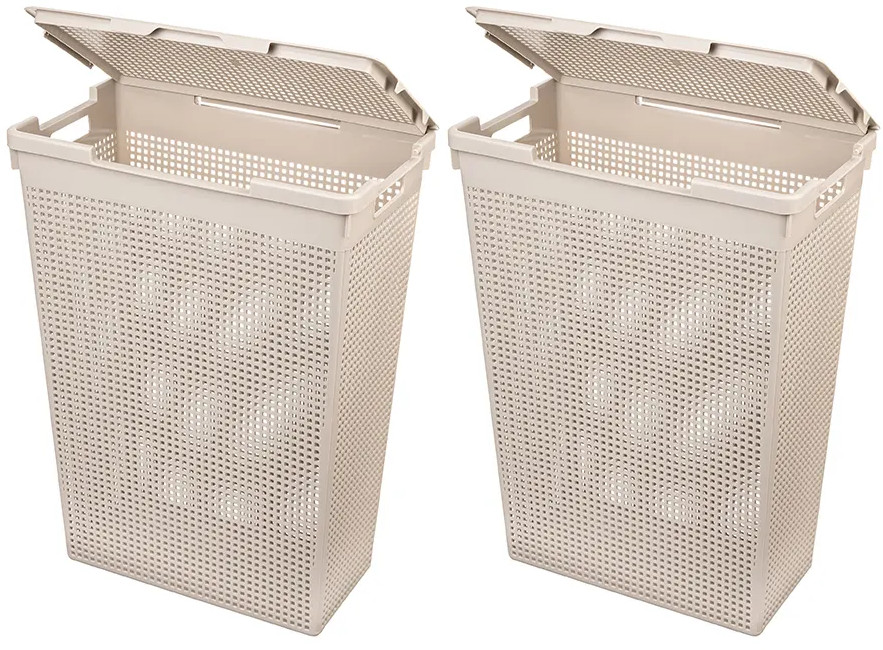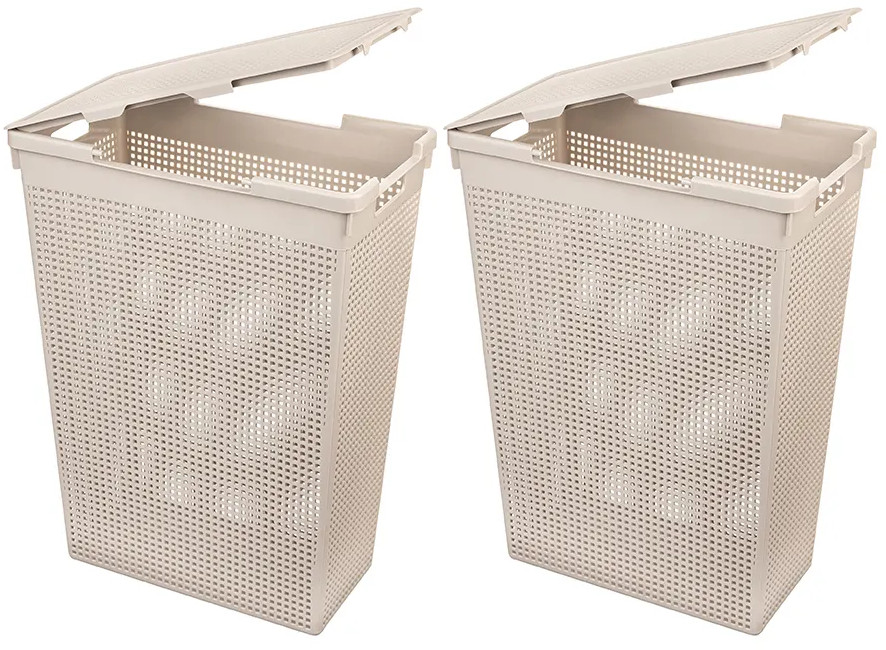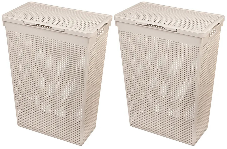 Набор 2 бельевых корзин с крышкой от El Casa предназначен для организации хранения в вашем доме. Размер каждого изделия — 45×26×61,5 см, объём — 50 литров. Размер дна — 37×18 см. Выполнены из полипропилена — прочного пластика, который не содержит бисфенол А и другие вредные вещества.