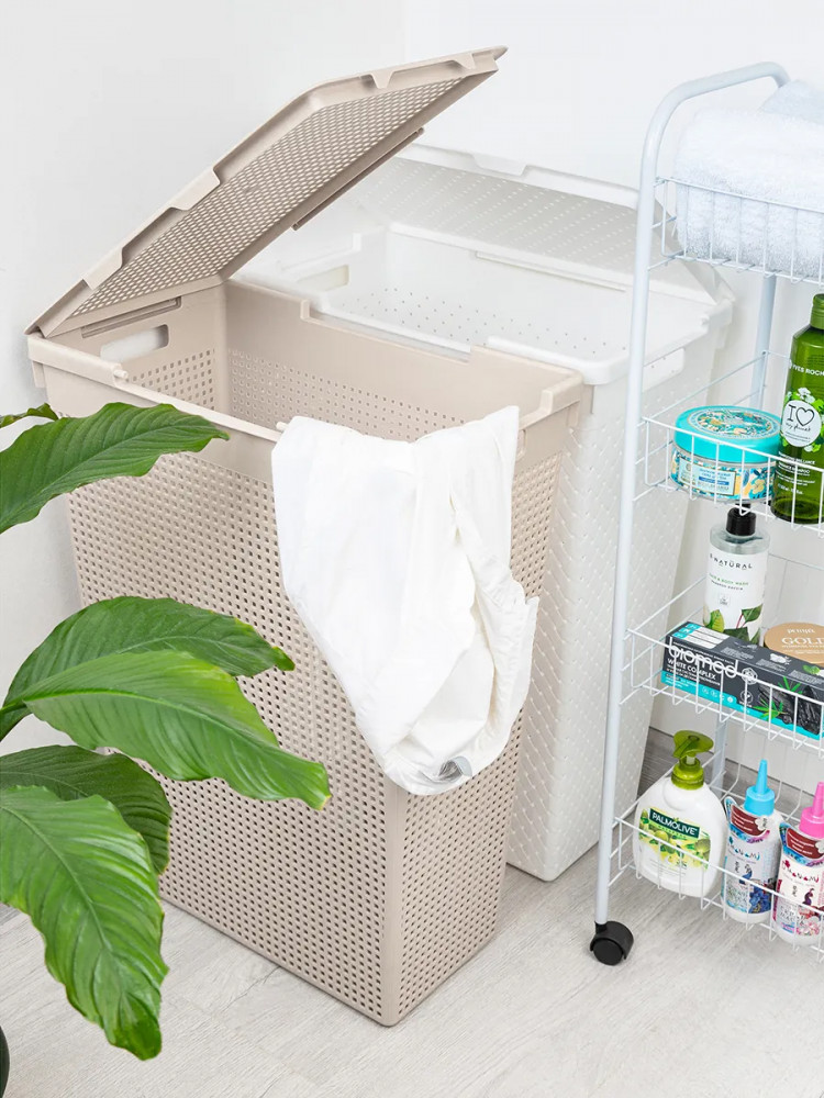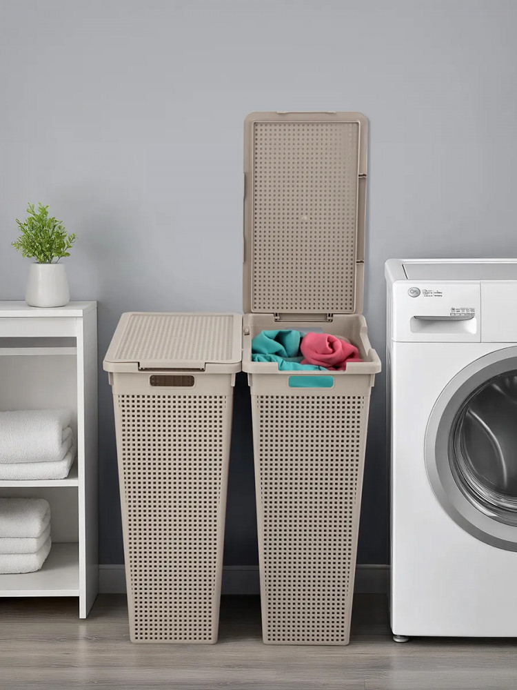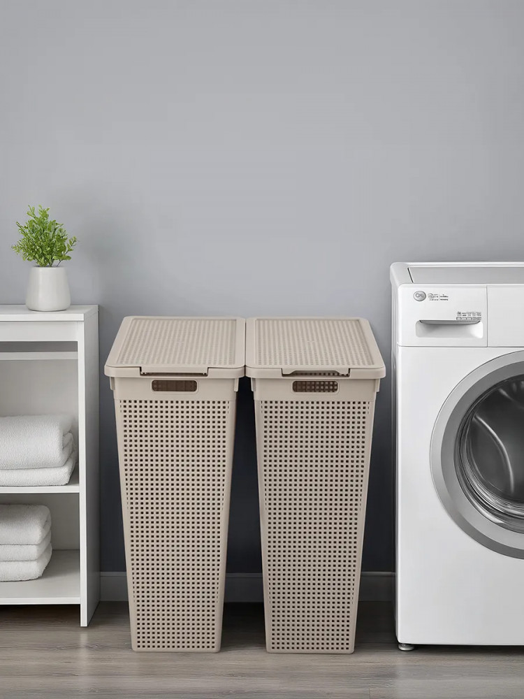 Благодаря своему лаконичному, но изысканному внешнему виду изделия впишутся в любой интерьер и найдут место в любой части вашего дома. Оснащены удобными крышками, надёжно закрывающими содержимое. Имеют два вида установки: на узкой или на широкой стороне корзины. Контейнеры идеально подходят для хранения вещей перед стиркой. Они помогут заранее сортировать одежду, полотенца, наволочки, постельное бельё и другие текстильные изделия. С ними вы легко организуете практичную систему хранения вещей. Разместите их рядом со стиральной машинкой, под раковиной в ванной комнате, а также в шкафу. Вместительные корзинки также послужат в роли универсальных органайзеров для хозяйственных принадлежностей, детских игрушек и предметов для рукоделия. Малый вес корзин и удобные ручки позволят перемещать их по всему дому. Не рекомендуется применять абразивные моющие средства.