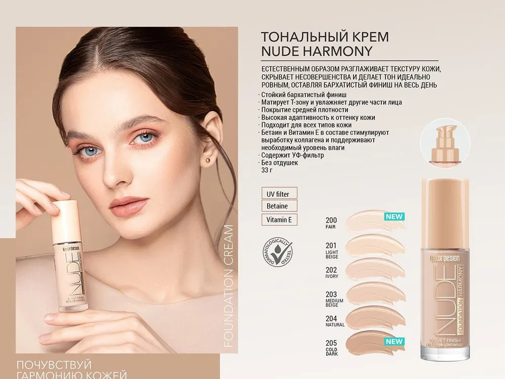 BelorDesign Тональный крем для лица «Nude Harmony» SPF 15, оттенок 205