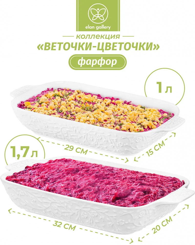 Elan Gallery Набор блюд-шубниц «Веточки-цветочки»