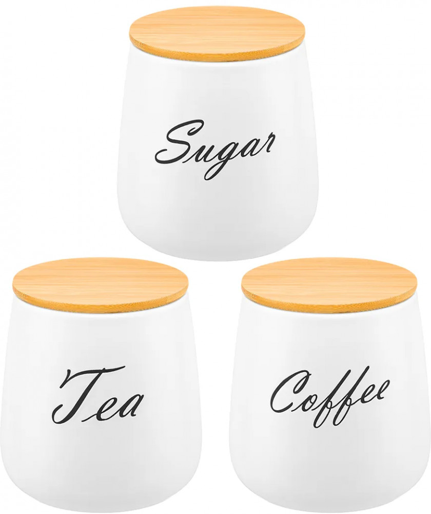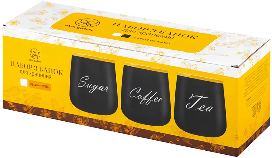 Elan Gallery Набор банок для сыпучих продуктов с крышками «Tea, Coffe, Sugar»