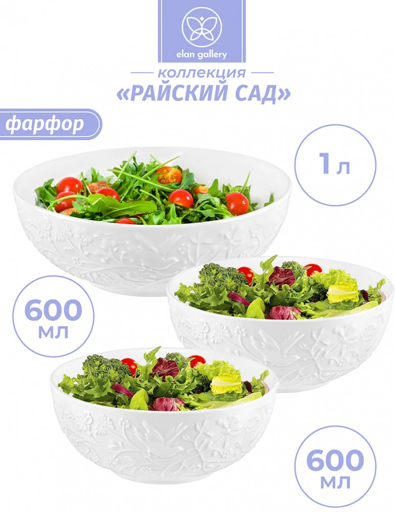 💳 Оплатить за товар можно при получении 🇰🇿 Есть бесплатная доставка по Казахстану от 1 дня 🎁 Копите бонусы с каждой покупки Серия: Райский сад Набор 3 салатников от Elan Gallery из серии «Райский сад» предназначен для эстетичной сервировки вашего стола. |
