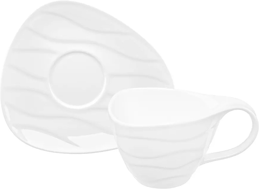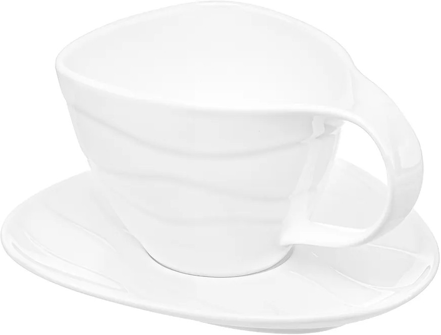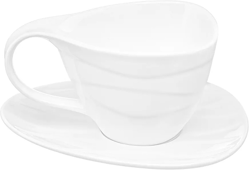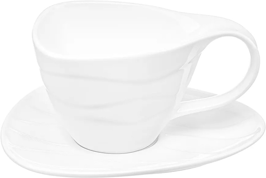 Выполнена из высококачественного белого фарфора. Он не впитывает цвет продуктов и легко отмывается, благодаря чему надолго сохранит свою белизну. Поверхность изделий украшают рельефные волнистые узоры. Кофейная кружка поможет провести множество приятных завтраков с капучино и латте, а также уютные чайные вечера с конфетами, вафлями, другими десертами и сладостями. Подойдёт ценителям чая и кофе, которые любят пить из красивой и необычной посуды. Согрейтесь зимой любимым горячим напитком: какао с маршмэллоу, ягодным чаем, горячим шоколадом. Летом освежитесь домашним лимонадом или морсом. Используйте сервировочное блюдце как подставку для чашки, чтобы порадовать гостей изящной сервировкой. Положите на десертную тарелку пирожное, кусочек торта или домашнего пирога. Подойдёт не только для десертов, но и для закусок: сырной нарезки, сырокопчёной колбасы или свежих овощей и зелени. Декоративные изделия добавят эстетики любому чаепитию.