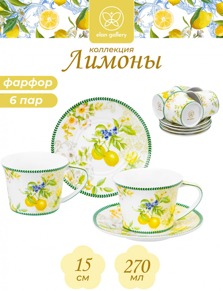 💳 Оплатить за товар можно при получении 🇰🇿 Есть бесплатная доставка по Казахстану 🎁 Копите бонусы с каждой покупки Серия: Лимоны Набор 6 чайных пар Elan Gallery «Лимоны» станет стильным дополнением вашей кухни. |