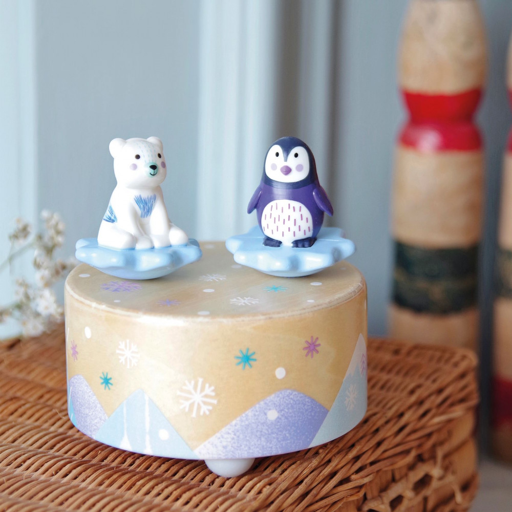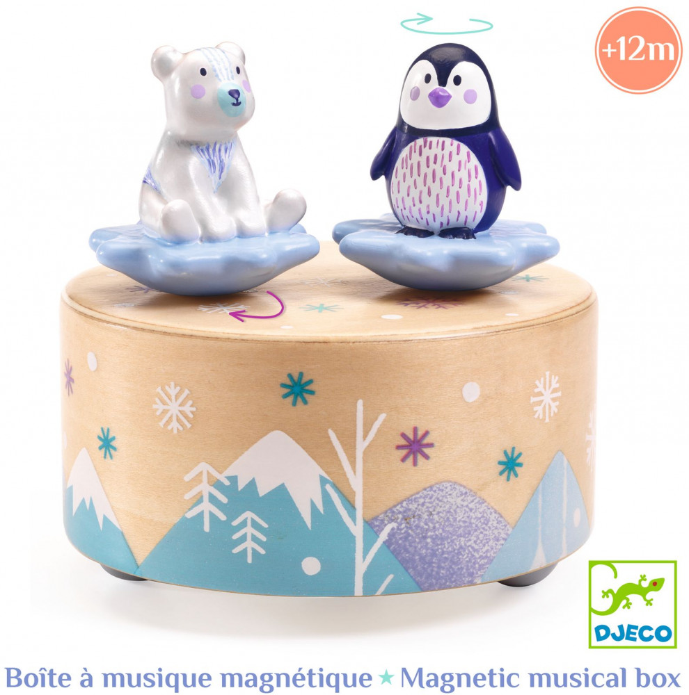 Djeco Музыкальная шкатулка «Ледовый парк»В данный момент этот товар отсутствует в продаже. Возможно, у нас найдется аналогичный или похожий товар здесь. Круглая магнитная музыкальная шкатулка, красиво иллюстрированная двумя милыми фигурками медведя и пингвина. Просто поверните ключ, и фигурки начнут вращаться и танцевать под звуки «Игрушечной симфонии» Вольфганга Амадея Моцарта. Мелодия длится около 2.5 минут. Диаметр шкатулки 10 см. |