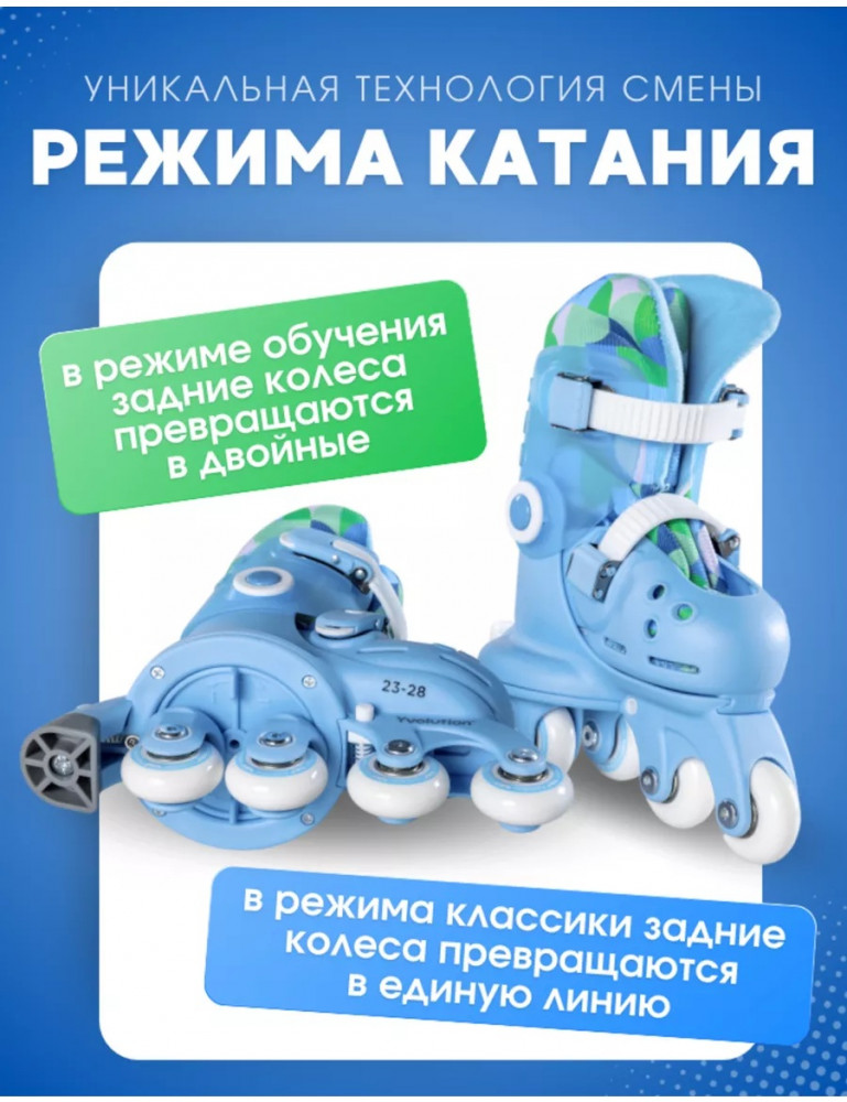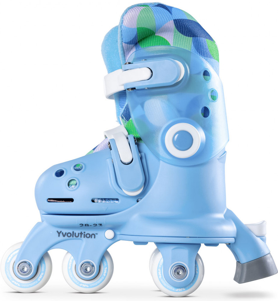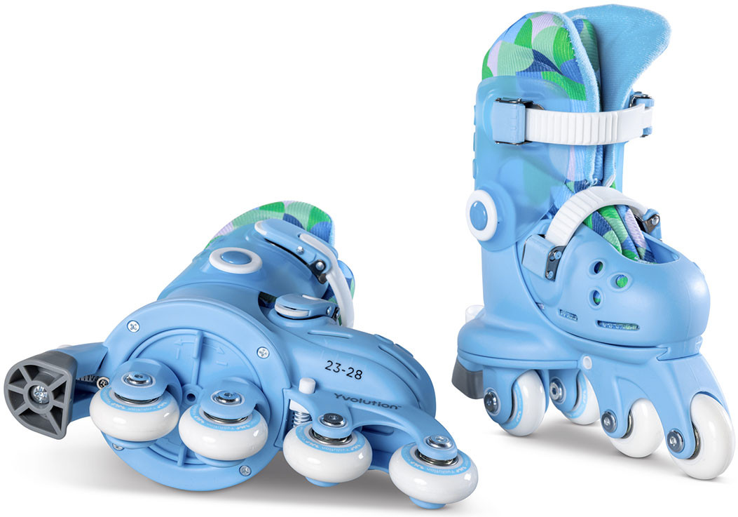 Ребёнок давно хочет научиться кататься на роликах? Тогда детские роликовые коньки Yvolution «Twista» — это прекрасный выбор! Ролики Yvolution «Twista» позволят малышам получить самый лучший первый опыт катания. Они оснащены уникальной технологией, которая позволяет одним нажатием кнопки переключиться из режима обучения в режим классического катания. В режиме обучения задние колеса превращаются в двойные, что придает ребенку ощущение равновесия. Переключившись в режим классического катания, задние колеса превращаются в единую линию, как на обычных роликах. В режиме ученика ребёнок почувствует себя безопасно и комфортно. Когда он привыкнет к катанию и будет чувствовать себя уверенно, можно включить режим классического катания.
