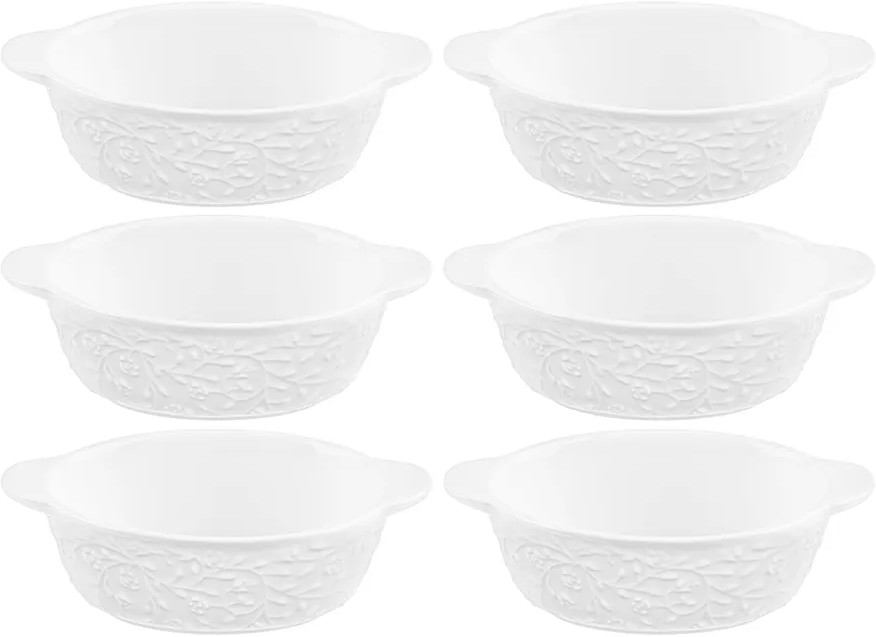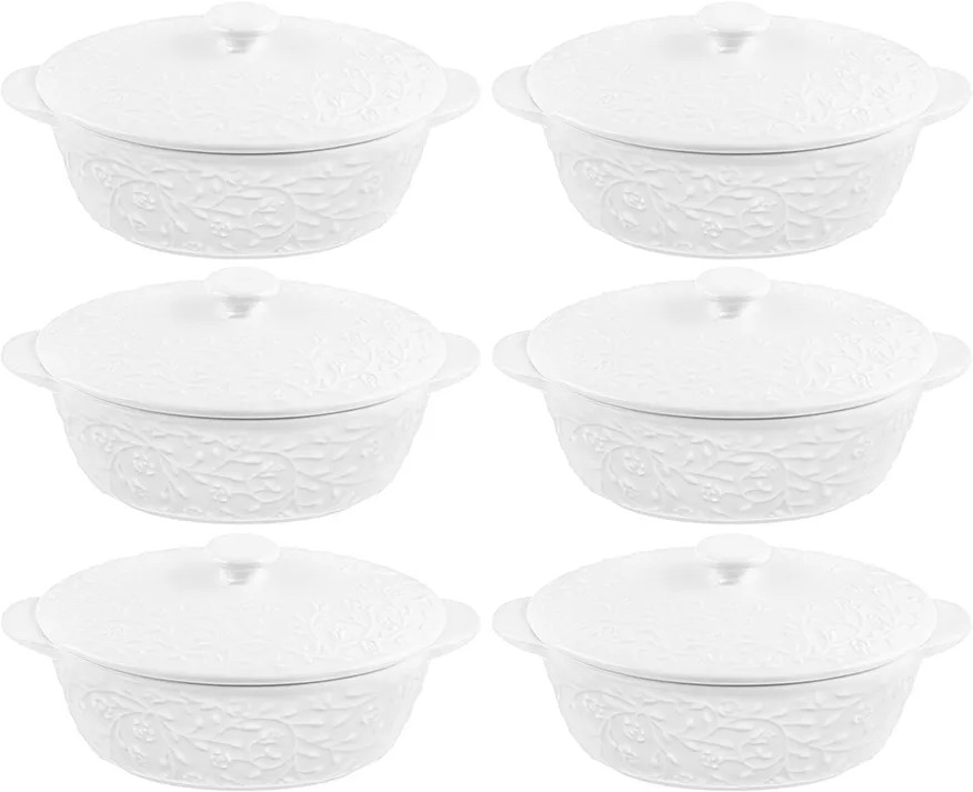 В данный момент этот товар отсутствует в продаже. Возможно, у нас найдется аналогичный или похожий товар здесь. Серия: Веточки-цветочки Набор 6 жюльенниц-кокотниц с крышками от Elan Gallery из серии «Веточки-цветочки» предназначен для эстетичной сервировки вашего стола. Размер каждой жюльенницы — 16×10×8 см, внутренний размер — 12,5×8,5×4,5 см, объём — 250 мл. Каждая кокотница выполнена из высококачественного белого фарфора и украшена изысканным рельефным узором. Поверхность изделия овивают тонкие лиственные и цветочные веточки, возле которых порхают выразительные птицы. Фарфор не впитывает цвет напитков и легко отмывается, благодаря чему надолго сохранит свою белизну.