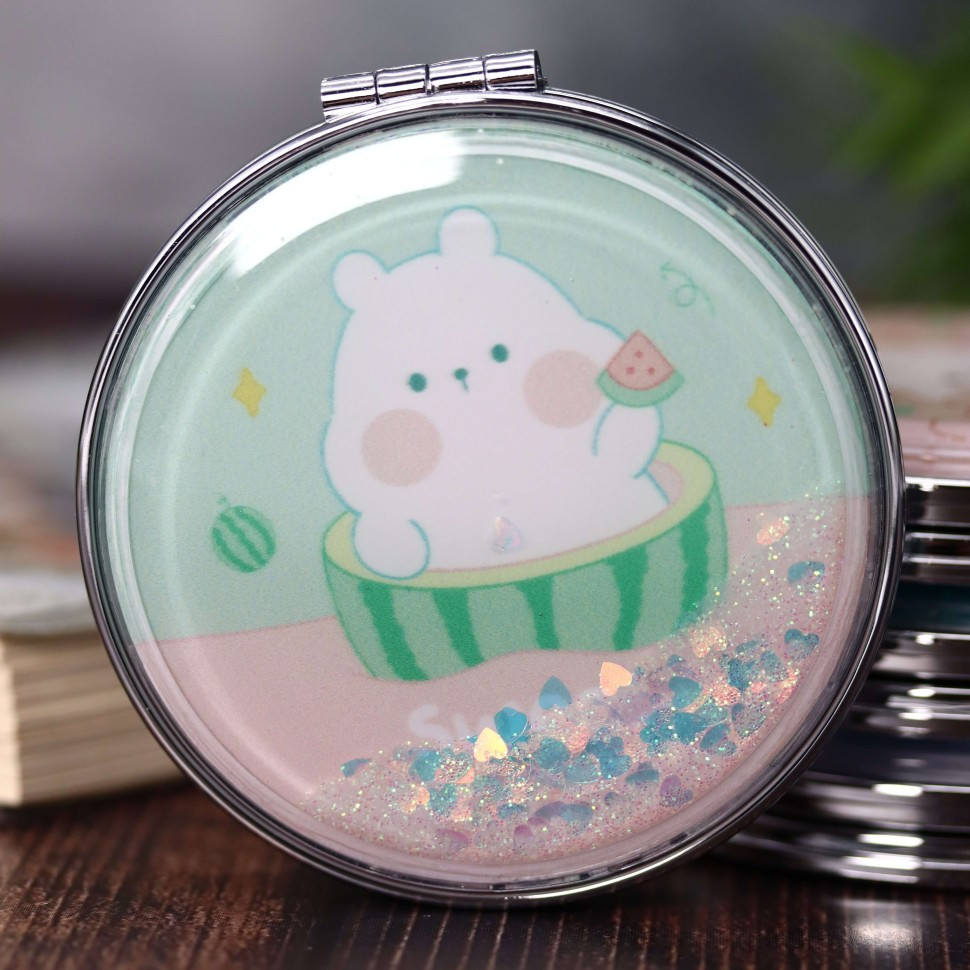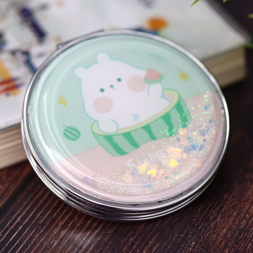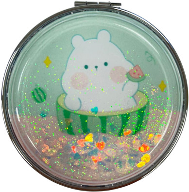 Стильное, карманное складное зеркальце, изготовленное в ярком и интересном дизайне, станет прекрасным украшением женской сумочки. Зеркальце обрамлено пластиковой рамкой. На лицевой стороне располагается оригинальный, герметичный отсек с водой и блёстками.