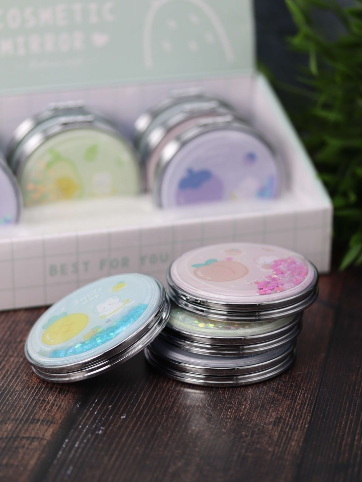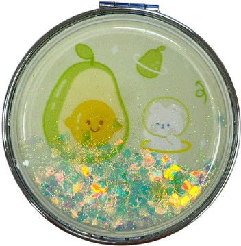 Стильное, карманное складное зеркальце, изготовленное в ярком и интересном дизайне, станет прекрасным украшением женской сумочки. Зеркальце обрамлено пластиковой рамкой. На лицевой стороне располагается оригинальный, герметичный отсек с водой и блёстками.
