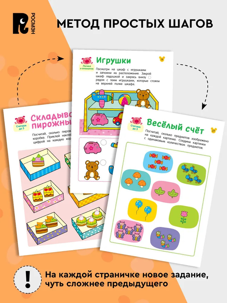 💳 Оплатить за товар можно при получении 🇰🇿 Есть бесплатная доставка по Казахстану от 1 дня 🎁 Копите бонусы с каждой покупки Серия: Весёлые развивашки «Весёлые развивашки» — это серия для детей от 2 до 6 лет с простыми и занимательными заданиями, которые научат вырезать, рисовать, проходить лабиринты, считать и решать задачки на логику. Книга для для трёх лет научит считать до 5 и по порядку; восстанавливать числовой ряд; сравнивать «больше — меньше», «длиннее — короче». |