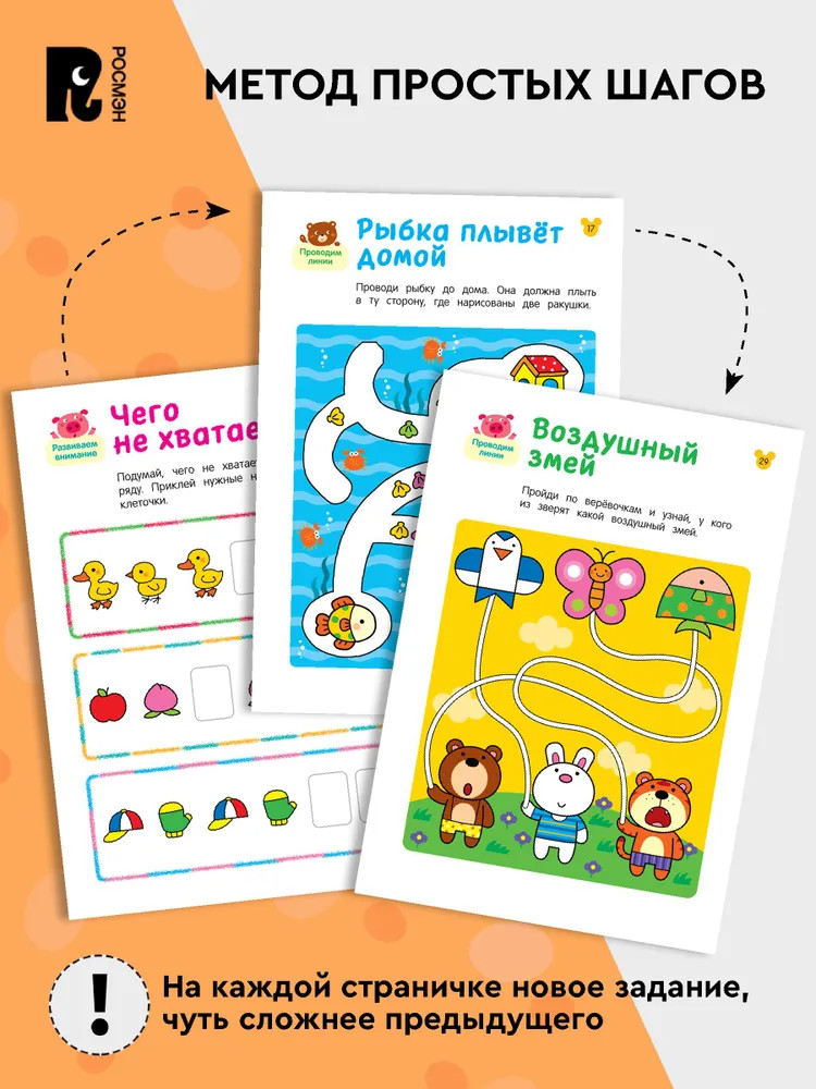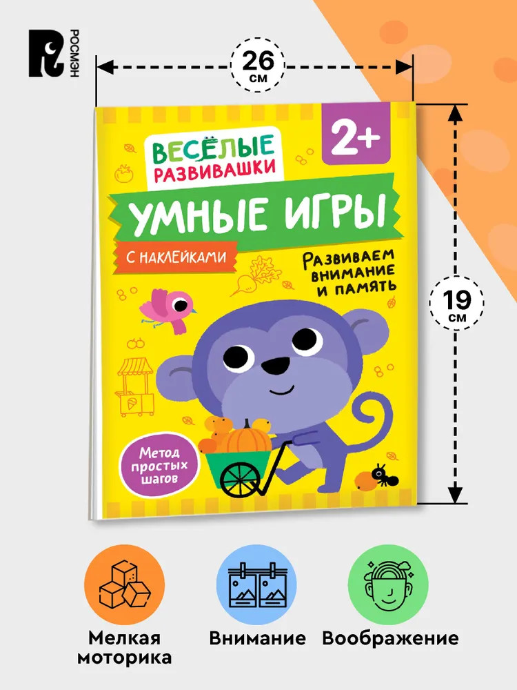 💳 Оплатить за товар можно при получении 🇰🇿 Есть бесплатная доставка по Казахстану от 1 дня 🎁 Копите бонусы с каждой покупки Серия: Весёлые развивашки «Умные игры» для детей от 2-х лет из серии «Веселые развивашки» помогут ребенку развить внимание, мышление, воображение и мелкую моторику. Выполняя задания в тетради, малыш научится: сравнивать предметы; находить пару; искать различия. Развивающее пособие составлено по методу простых шагов: задания постепенно усложняются, чтобы малыш видел свои успехи и с удовольствием брался за новые игры. Так ребенок научится решать логические задачи и отработает сложные движения кисти, которые в будущем пригодятся на уроках письма. Для занятий вам понадобится: утолщенные восковые мелки диаметром около 1 см, с трехгранным корпусом. Издание входит в серию «Веселые развивашки» от издательства «Росмэн» — это увлекательные игры для детей от 2-3-х лет и старше! Пособия серии научат малышей рисовать, вырезать, создавать аппликации, проходить лабиринты, считать и решать задачки на логику. |