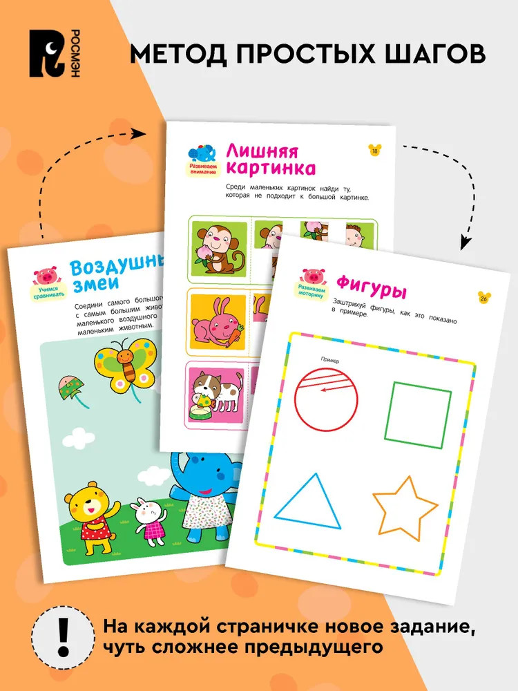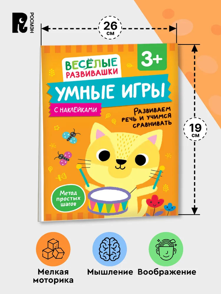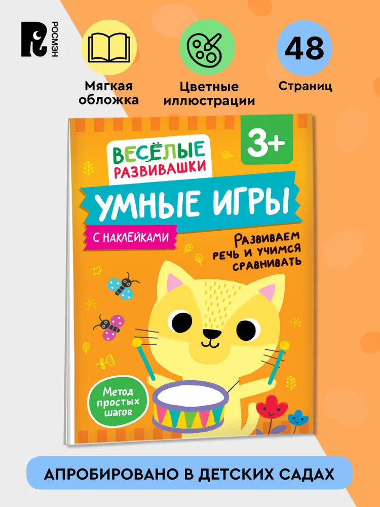 💳 Оплатить за товар можно при получении 🇰🇿 Есть бесплатная доставка по Казахстану от 1 дня 🎁 Копите бонусы с каждой покупки Серия: Весёлые развивашки «Умные игры» для детей от 3-х лет из серии «Веселые развивашки» помогут ребенку развить внимание, память, воображение и мелкую моторику. Развивающее пособие составлено по методу простых шагов: задания постепенно усложняются, чтобы малыш видел свои успехи и с удовольствием брался за новые игры. Так ребенок научится решать логические задачи и отработает сложные движения кисти, которые в будущем пригодятся на уроках письма. Для занятий вам понадобится: утолщенные восковые мелки диаметром около 1 см, с трехгранным корпусом. Издание входит в серию «Веселые развивашки» от издательства «Росмэн» — это увлекательные игры для детей от 2-3-х лет и старше! Пособия серии научат малышей рисовать, вырезать, создавать аппликации, проходить лабиринты, считать и решать задачки на логику. |