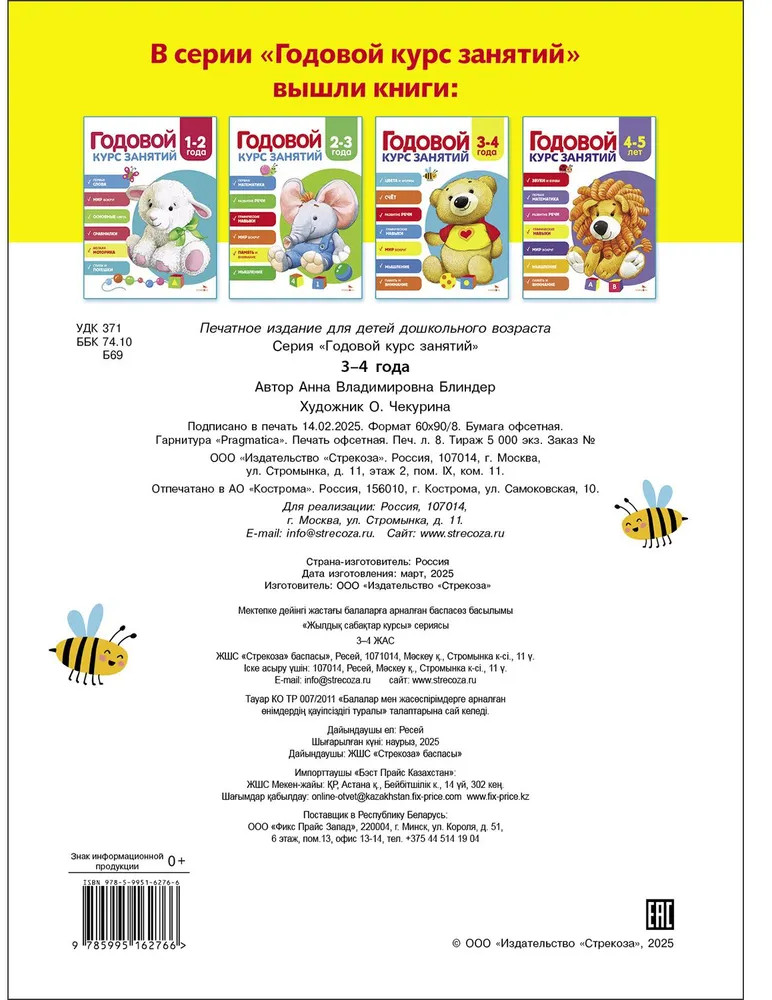💳 Оплатить за товар можно при получении 🇰🇿 Есть бесплатная доставка по Казахстану от 1 дня 🎁 Копите бонусы с каждой покупки Серия: Годовой курс занятий Перед вами удивительная книга, созданная специально для детей в возрасте от 3 до 4 лет, чтобы помочь им активно развиваться и приобретать важные навыки. На страницах этой книги вы найдёте множество занимательных заданий, связанных увлекательной историей приключений брата и сестры, Семёна и Сони Веснушкиных, которые отправляются на поиски пропавшего попугая Киви. Они побывают в лесу, на ферме, у врача, в порту, на стадионе, в зоопарке и даже на аэродроме. На каждой страничке ребенок не только познакомится с новыми темами и предметами, но и будет выполнять интересные интерактивные задания на развитие логического мышления, внимания и памяти, искать отличия и спрятанные предметы на картинках, учиться считать и называть количество предметов, обводить и рисовать. Пусть каждое занятие будет наполнено радостью и новыми открытиями! |