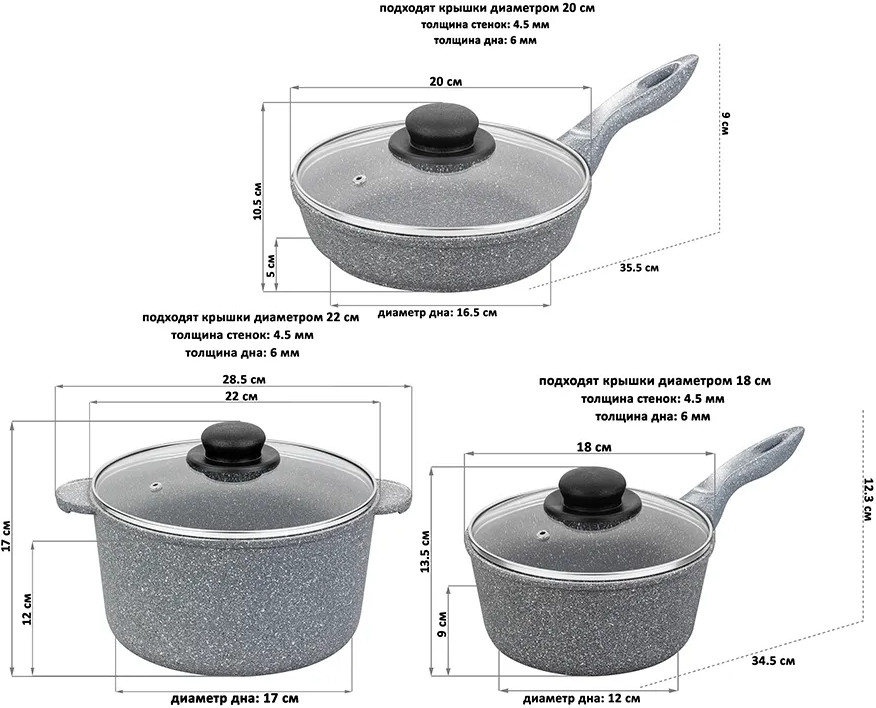 • сковорода глубокая с крышкой, диаметр 20 см (35.5×20×10.5 см) — 1 шт.;