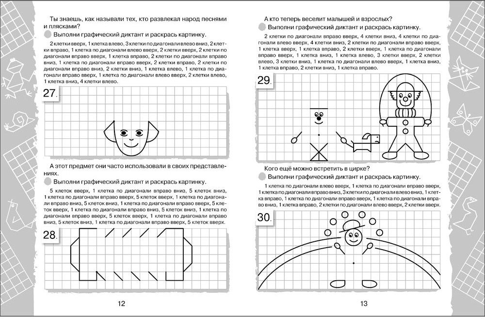 Картинки в клеточках. Графические диктанты-30% +7