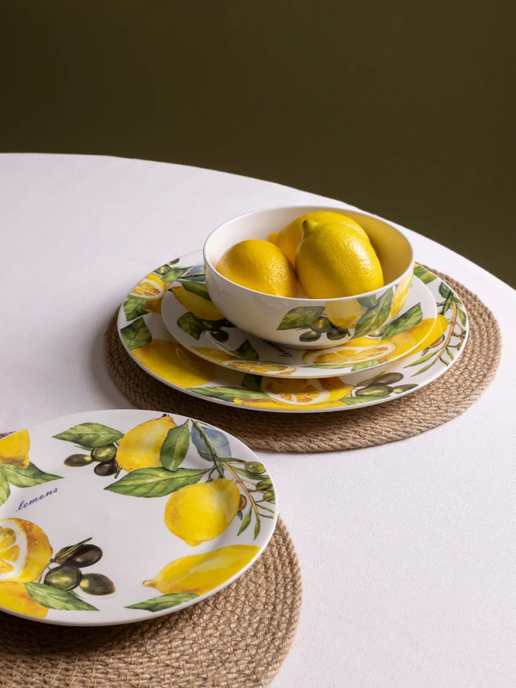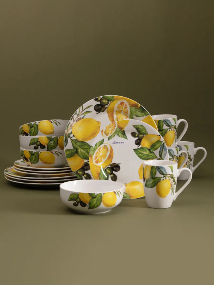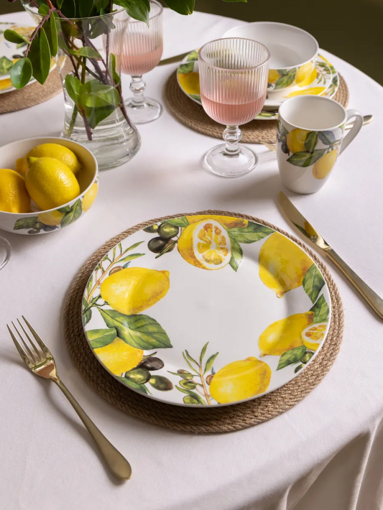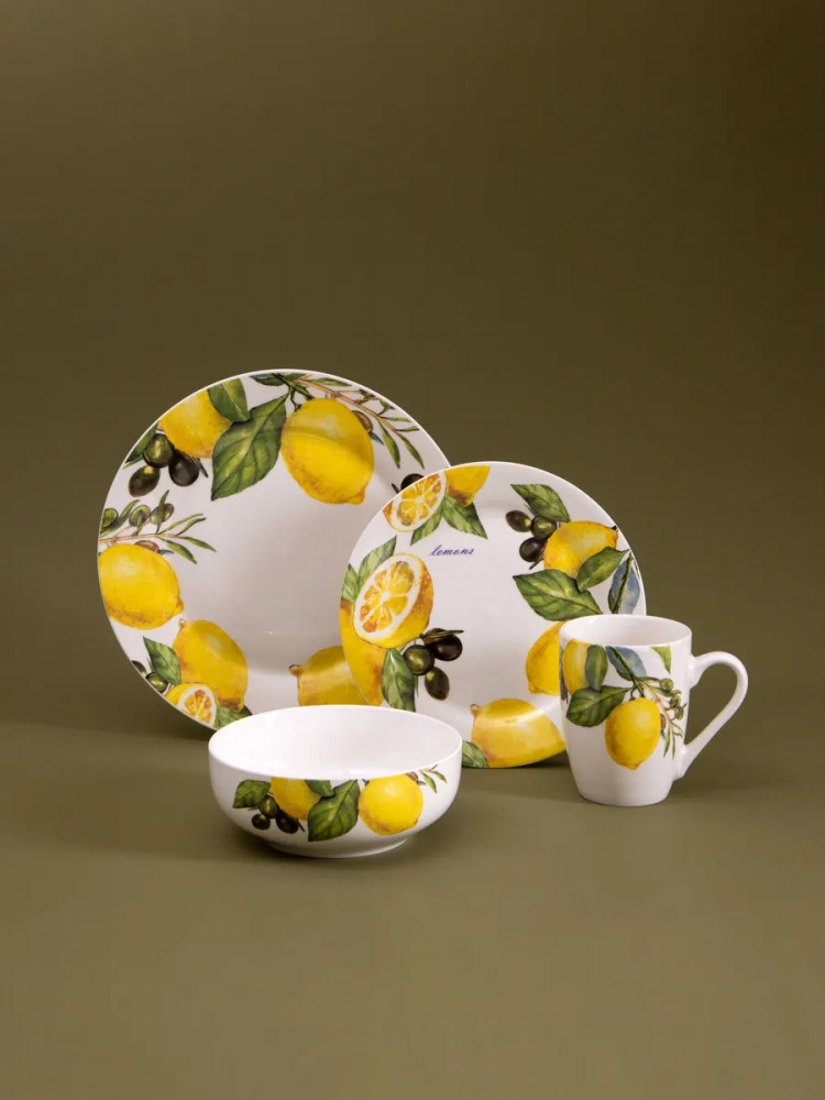 Данная посуда прекрасно подойдет в качестве подарка и никого не оставит равнодушным. Сделайте себе подарок, побалуйте себя и своих близких! Сервиз на 4 персоны создан для тех, кто ценит стиль и удобство. Сочные лимоны, изображенные на посуде, добавят ярких акцентов в ваш интерьер. Он идеально подойдет для семейных обедов, праздников и торжеств. Такой столовый набор станет отличным выбором для дома или подарком на Пасху, 8 марта или свадьбу. Это практичное решение для ежедневного использования и праздничной сервировки.