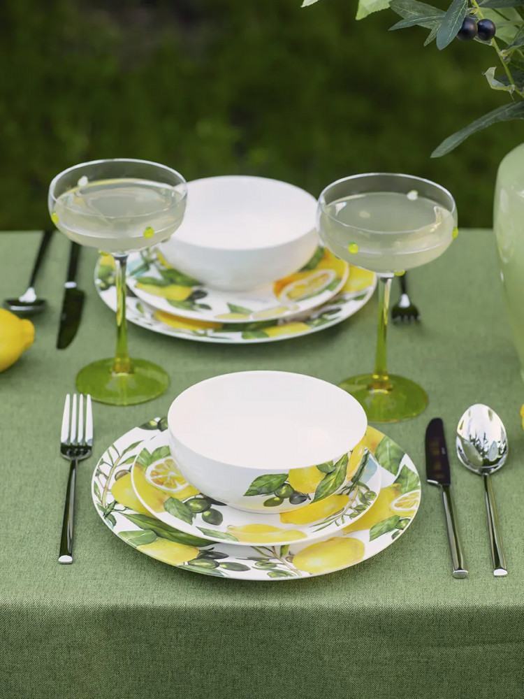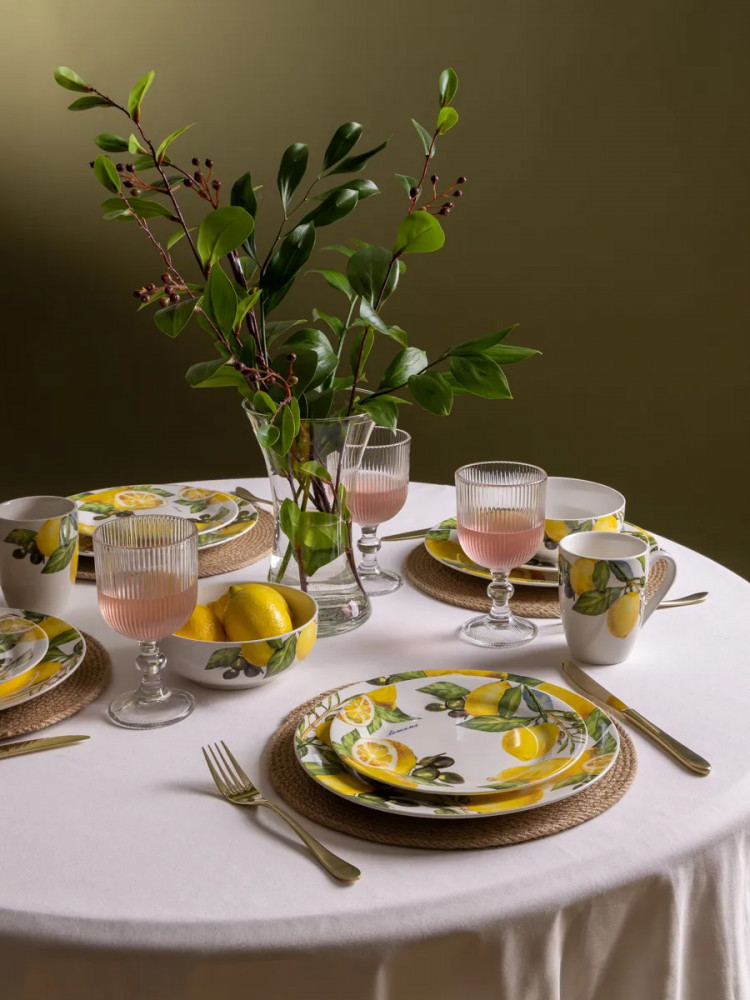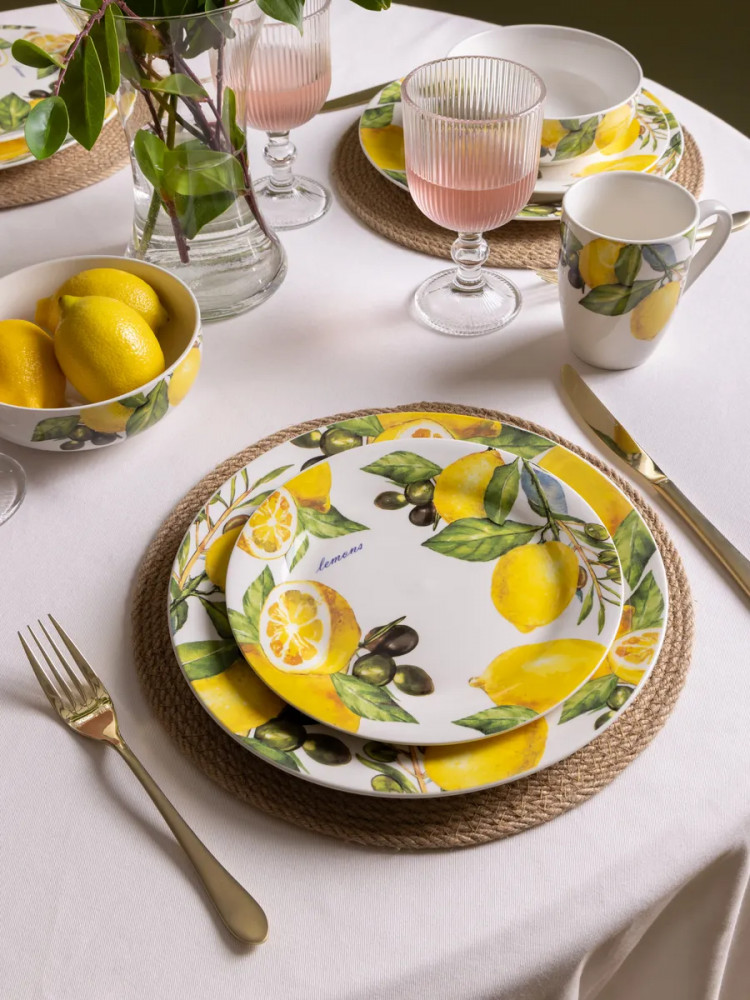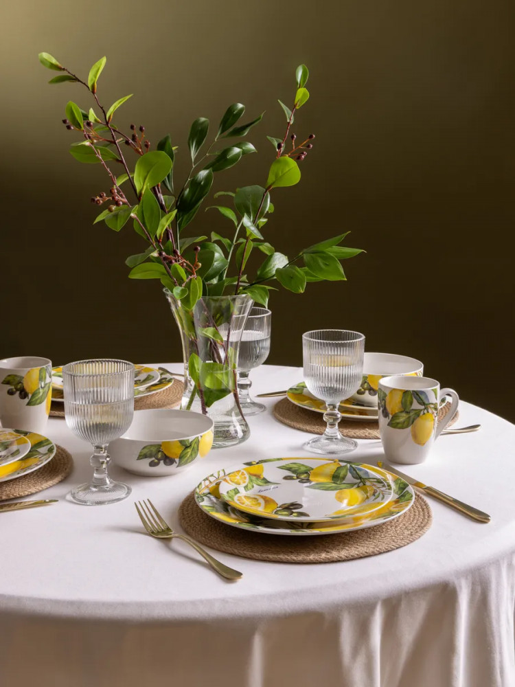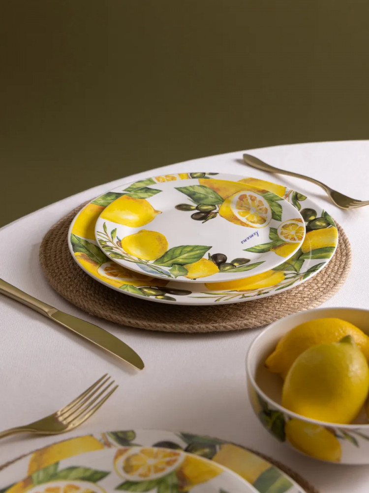 Данная посуда прекрасно подойдет в качестве подарка и никого не оставит равнодушным. Сделайте себе подарок, побалуйте себя и своих близких! Сервиз на 4 персоны создан для тех, кто ценит стиль и удобство. Сочные лимоны, изображенные на посуде, добавят ярких акцентов в ваш интерьер. Он идеально подойдет для семейных обедов, праздников и торжеств. Такой столовый набор станет отличным выбором для дома или подарком на Пасху, 8 марта или свадьбу. Это практичное решение для ежедневного использования и праздничной сервировки.