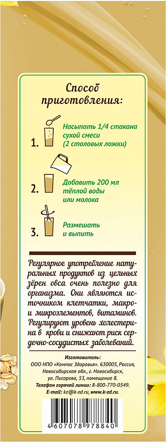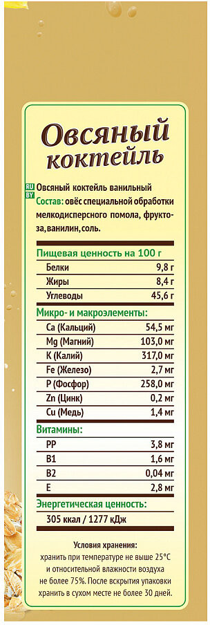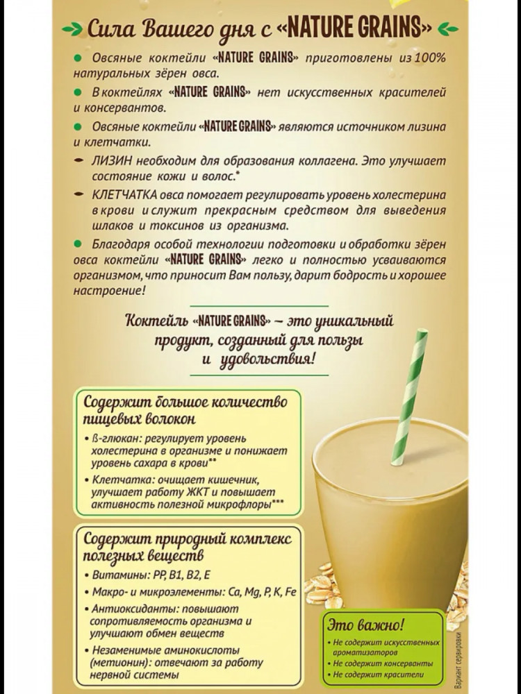 NatureGrains Коктейль овсяный с ванилью без сахара