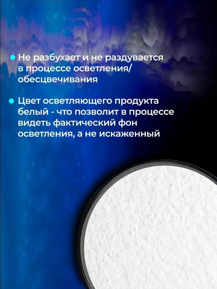 Порошок строго для профессионального использования! Наш осветляющий продукт соответствует всем вашим запросом, как бы вы его не называли: будь то «порошок для осветления», или «осветлитель для волос», кто-то подобные продукты называет: «пудра для осветления волос», и кстати в cоставе нашего продукта есть знаменитый пероксид калия.