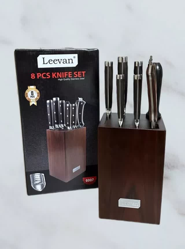 Премиальный набор ножей Leevan 6001 сочетает в себе высокое качество и изысканный внешний вид. Благодаря стильной деревянной подставке и прочным лезвиям из нержавеющей стали, этот набор станет настоящим украшением любой кухни.