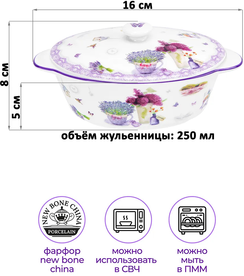 💳 Оплатить за товар можно при получении 🇰🇿 Есть бесплатная доставка по Казахстану от 1 дня 🎁 Копите бонусы с каждой покупки Серия: Лаванда Жюльенница-кокотница от бренда Elan Gallery «Лаванда» с крышкой выполнена из фарфора нового поколения new bone china. New bone china сочетает в себе изящность и высокую прочность. От классического костяного фарфора материал отличается большей экологичностью в производстве. Размер жюльенницы — 16×10×8 см, объём — 250 мл, высота без крышки — 5 см, внутренний размер — 12,5×8,5×4,5 см. Серия «Лаванда» украшена нежным принтом на тему Прованса — французской провинции, которая славится своими лавандовыми полями и красивыми пейзажами. Изображение пышных букетов лаванды и гортензии позволит окунуться в атмосферу тепла, гармонии и южного солнца, не покидая вашей кухни или столовой! Форму с крышечкой можно использовать для приготовления жюльена, а также для выпекания разнообразных десертов, кондитерских и кулинарных изделий. Красивую жюльенницу после приготовления можно сразу подавать на стол. |