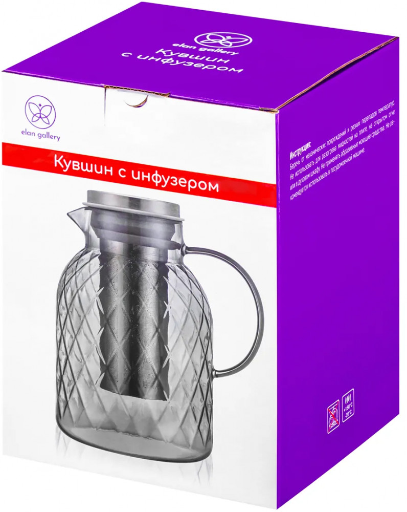 Не рекомендуется применять абразивные моющие средства. Не использовать для разогрева жидкостей на плите, на открытом огне или в духовом шкафу. Не подходит для использования в посудомоечной машине. Поставляется в дизайнерской картонной коробке — благодаря ей вам не потребуется дополнительная подарочная упаковка. Такой сосуд станет отличным подарком для хозяйки, ценящей не только практичность, но и привлекательность. В коллекции бренда Элан Галерея множество красивой посуды, которая поможет создать уют на вашей кухне!