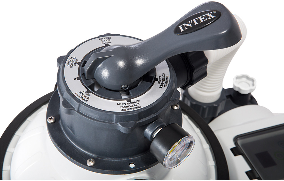 • 6-позиционный управляющий клапан (фильтрация, слив, перекрытие, обратная промывка, рециркуляция, усадка песка);