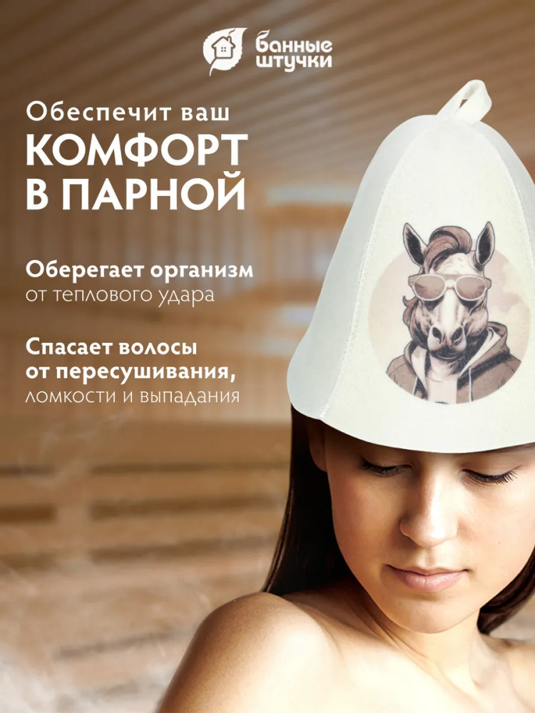 Банные штучки Шапка для бани и сауны «Жеребец на стиле»+59