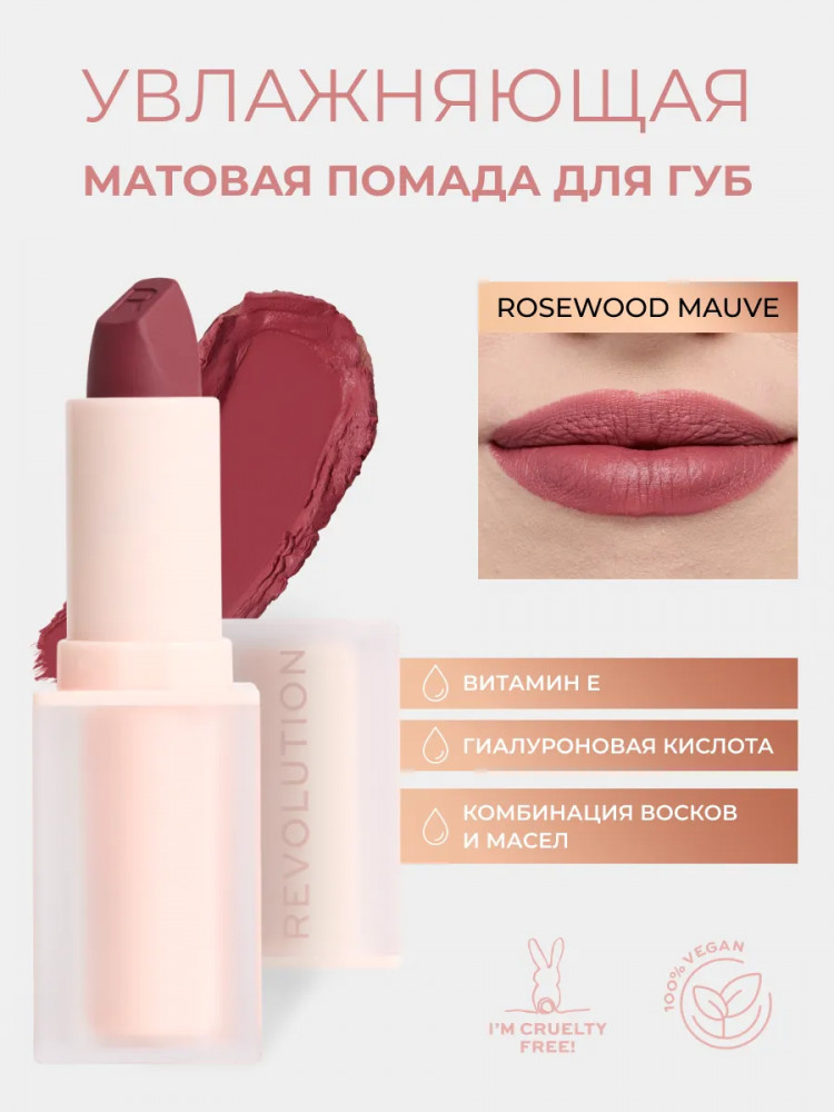 Makeup Revolution Помада для губ «Lip Allure Soft Satin Lipstick», тон Rosewood Mauve