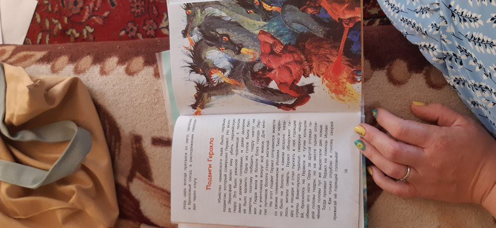 Очень понравилась, в книгу вошли 17 мифов: "Рождение богов", "Прометей", "Детство и юность Геракла", "Подвиги Геракла", "Гибель Геракла", "Дедал и Икар", "Юность Тесея", "Тесей и Минотавр", "Персей и Медуза", "Золотое руно", "Юность Ясона", "Поход аргонавтов", "Ясон и Медея", "Смерть Ясона", "Троянский конь", "Падение Трои", "Аид и Персефона".