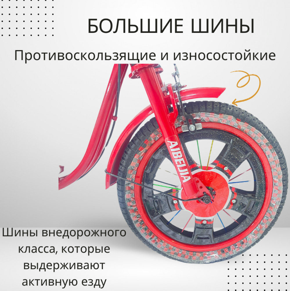 Для начинающих предусмотрены вспомогательные колёса, которые помогают ребёнку научиться держать равновесие и почувствовать уверенность за рулём. По мере освоения навыков, их легко можно снять — и малыш сможет переходить к езде на двухколёсном велосипеде.