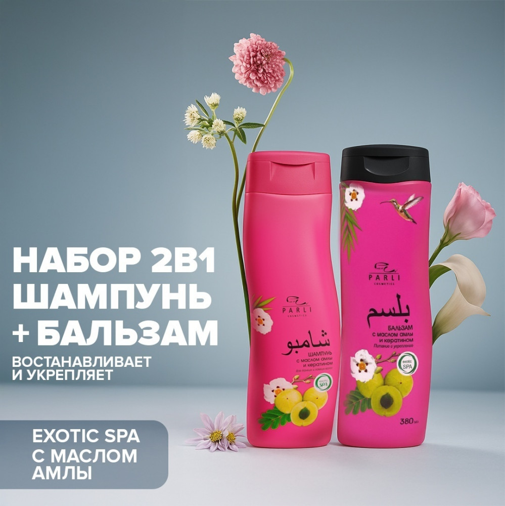 Шампунь: Water (Aqua), Sodium Laureth Sulfate, Cocamidopropyl Betaine, Glycerin, Polyquaternium-7; Cocamide DEA, Coco Glucoside, Sodium Cocoamphoacetate, Sodium Chloride; Hydrolyzed Protein Keratin (кератин), Allantoin (аллантоин), Amla Oil (масло амлы); Persea Gratissima (Avocado) Oil (Масло авокадо); Orbignya Oleifera (Babassu) Seed Oil (масло бабассу), Parfum (Fragrance), Polysorbate-20; PEG-40 Hydrogenated Castor Oil, Triglycerides of Linoleic (and) Linolenic Acids; Tocopheryl Acetate (витамин Е), Retinyl Palmitate (витамин А), Propylene Glycol; Litchi Chinensis Fruit Extract (экстракт личи), Сarica Papaya Fruit Extract (экстракт папайи); Guar Hydroxypropyltrimonium Chloride, Phenoxyethanol, Citric Acid, Disodium EDTA.