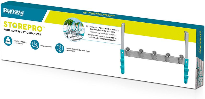 Bestway Органайзер настенный для бассейнаВ данный момент этот товар отсутствует в продаже. Возможно, у нас найдется аналогичный или похожий товар здесь. Органайзер для аксессуаров и оборудования для бассейна Flowclear™ StorePro™ позволяет хранить все инструменты для очистки бассейна в одном удобном месте. Этот держатель имеет гнезда для хранения до пяти скиммеров, щеток, сачков, пылесосов или любого другого типа инструмента с ручкой диаметром 3 см (1.2 дюйма), что позволяет хранить все необходимое в одном удобном месте. Есть также место для двух штанг, а также ремешок для шланга и крючки для различных принадлежностей. Этот организатор обеспечит компактность хранения и легкость доступа для всех ваших инструментов. Его просто установить — либо прикрутить к стене, либо повесить на ограждение. Независимо от вашего решения, все необходимое оборудование входит в комплект. Входящие в комплект кронштейны могут быть отрегулированы на глубину до 7.62 см (3 дюйма), обеспечивая гибкость установки и универсальность. StorePro — это долговечное изделие со стальным и пластиковым кронштейном для крепления, которое сможет вывести зону вашего бассейна на новый уровень! |