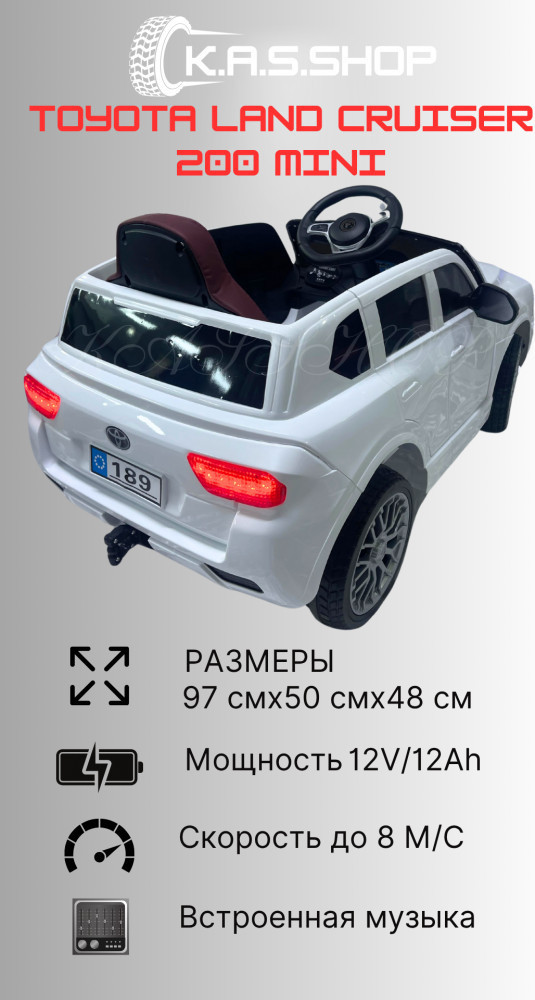 Электромобиль детский «Toyota 189 mini»В данный момент этот товар отсутствует в продаже. Возможно, у нас найдется аналогичный или похожий товар здесь. Электромобиль для детей марки Toyota отлично подойдет для самых маленьких водителей. Машинка рассчитана для детей 0+. В комплекте идет пульт дистанционного управления, действующий на расстоянии до 30 метров. Данная модель имеет не только развлекательную функцию. Управление детским электромобилем способствует развитию внимательности и координации движения. Катание на машинке позволит познакомиться с правилами дорожного движения. Детский электромобиль выдерживает нагрузку до 35 кг. Прорезиненные колеса и амортизация сделают поездку плавной. Два 30-ваттных мотора позволяют кататься не только на гладких дорожных покрытиях, но и по грунтовой дороге, траве и песку. Удобное сиденье с ремнями безопасности отвечает за комфортное передвижение. Детская машина на аккумуляторе для катания имеет зеркала заднего вида, музыкальное оборудование, световые эффекты, распахивающиеся дверцы. Разгоняется до 7 км/ч. Аккумуляторная батарея гарантирует долгую непрерывную прогулку. |