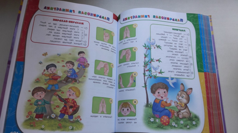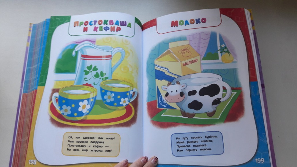 Книга понравилась, рассматриваем с удовольствием яркие картинки, слушаем песни и потешки. На мой взгляд, не очень удобно, что все в одной книге - до нужного раздела нужно долистывать. Если бы разные разделы были в разных мини-книгах, находить нужные страницы было бы быстрее. Сравниваю с книгой из серии "Школа семи гномов".